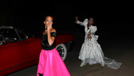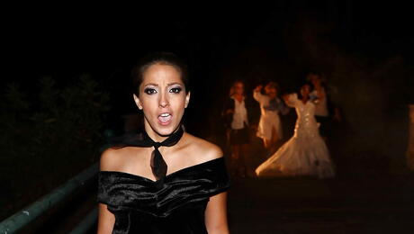 Sexy american brunette Jenna Haze fucked in the ass after sucking big dick outside