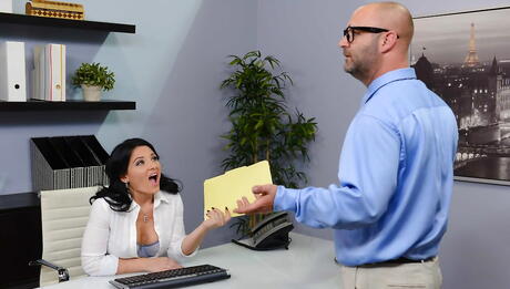 Sexy american Casey Cumz take in mouth huge rod and takes a messy cum shot in office
