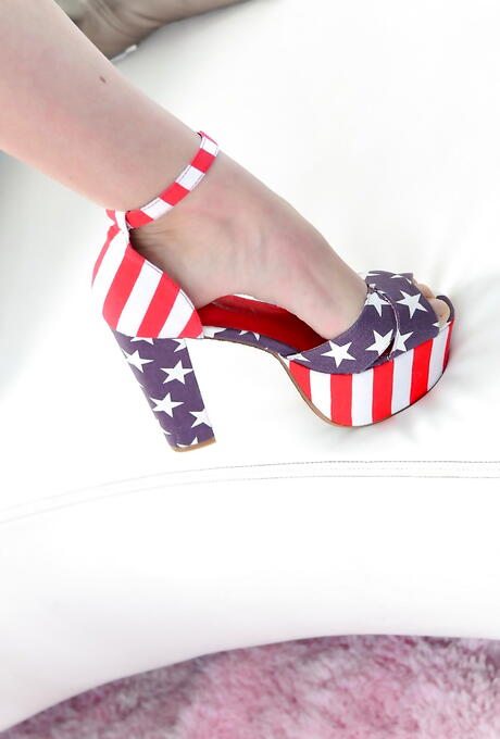 Sexy american young Jessie Andrews in fancy shorts exhibiting her butt