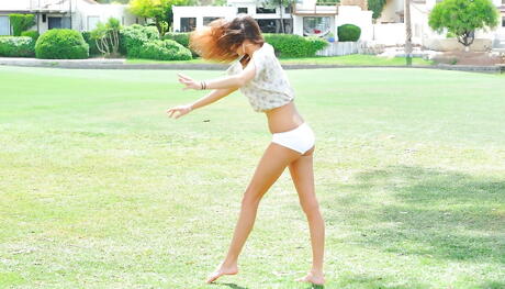 Sexy american youthful Presley Dawson exhibits her ass in nice skirt and stuffing her snatch with a toy outside