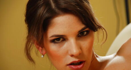 Sexy babe Demi A in stockings exposes tiny tits and puts a toy in her cunt