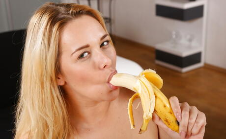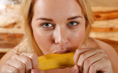 Sexy blond young Nikki Dream in tight jeans toys her cunt
