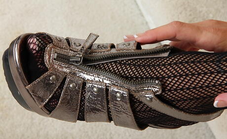 Sexy blonde aged Brea in sexy skirt is foot fetishist