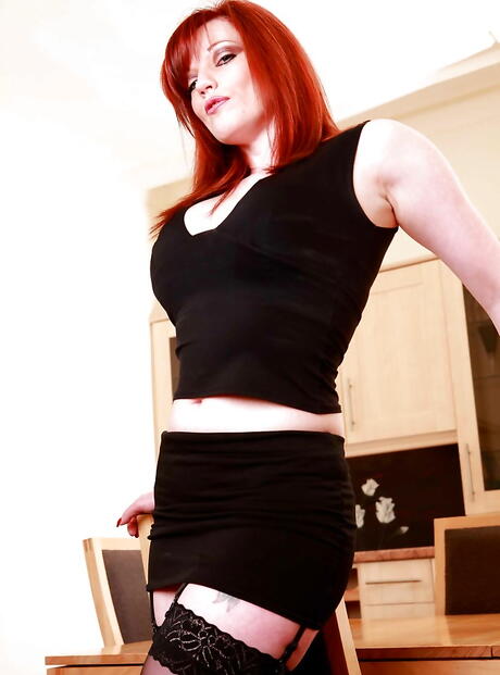 Sexy british redhead milf Holly Kiss in hot lingerie baring big hooters and sissy