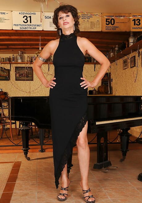 Sexy brunette older Judyt bares big knockers and spreads her legs