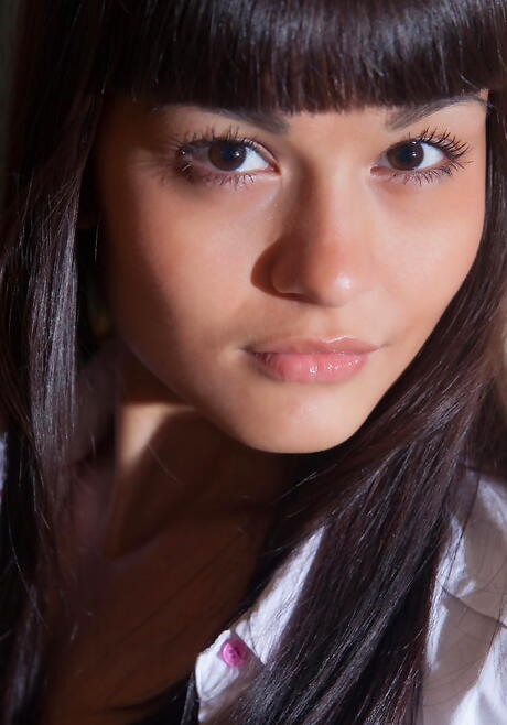 Sexy brunette teen Landysh A exhibits tiny tits and hairy pussy