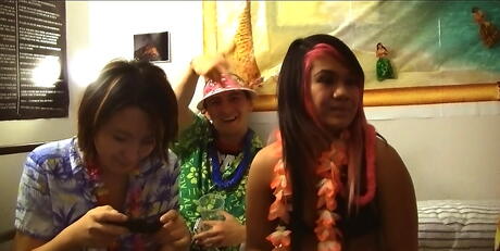 Sexy coeds Li, Sam Norton and Jordan Denae in awesome college orgy