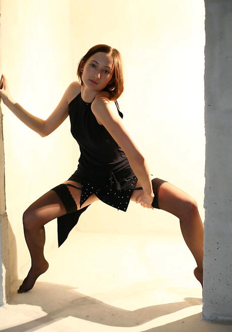 Sexy cutie Millena in fancy skirt shows small tits and spreads her legs