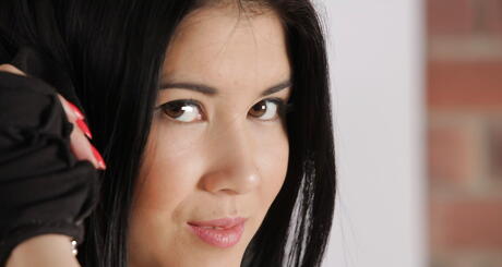 Sexy czech brunette teen Lady Dee in plays with dildo in office