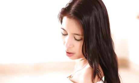 Sexy czech dark-haired youthful Paula Shy exposing big titties and masturbating