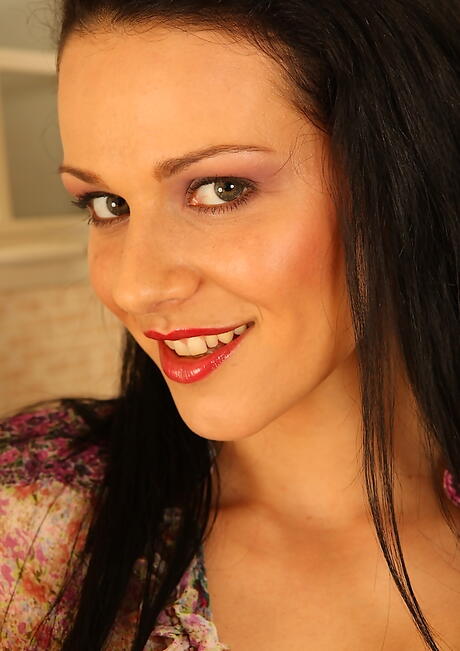 Sexy dark-haired milf Katty exhibits her butt in nice skirt and masturbates in the kitchen