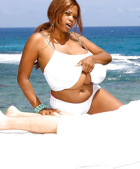 Sexy dominican Miosotis bares big hooters and ass on the beach