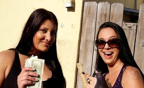 Sexy girls Kiara Knight and Esmi Lee shows some fetish on the party