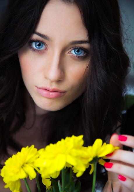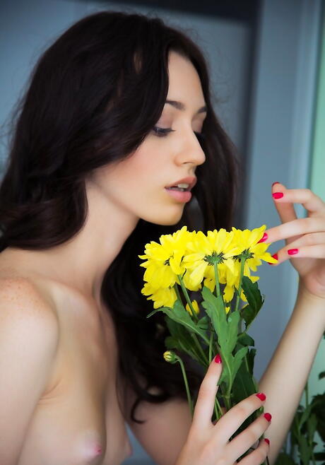 Sexy hungarian brunette youthful Zsanett Tormay uncovering tiny tits and spreading her legs in the kitchen