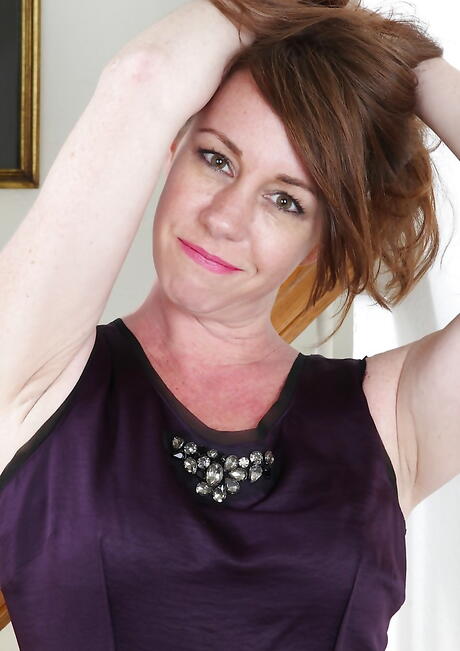 Sexy older Joanie Bishop in sexy posing on camera