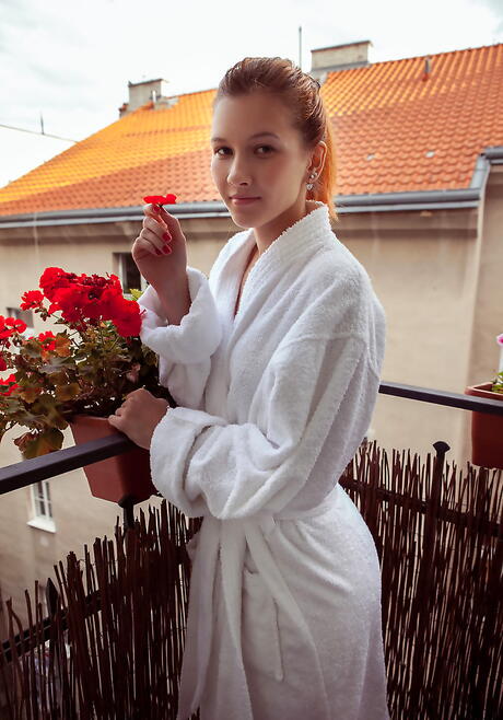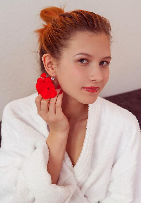 Sexy red-haired young Ambre in underwear exposing her ass and shaved pussy outdoor