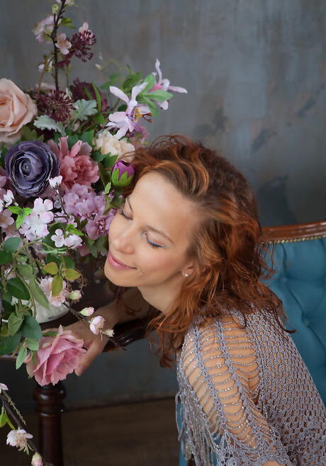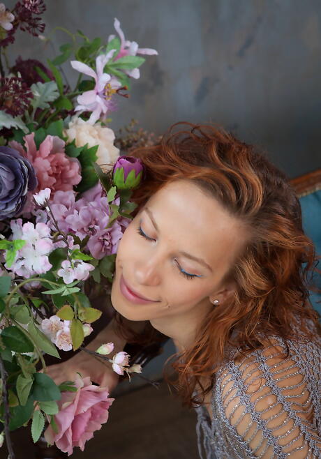 Sexy redhead babe Dennie in sexy panties likes some hot foot fetish outdoor