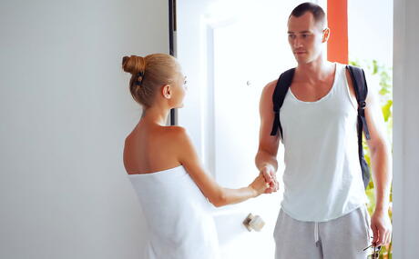 Sexy ukrainian blond young Nancy A sucks on big dick
