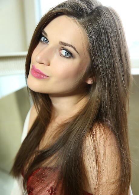 Sexy ukrainian brunette hottie Serena Wood shows tiny tits and spreads her legs in the bathroom