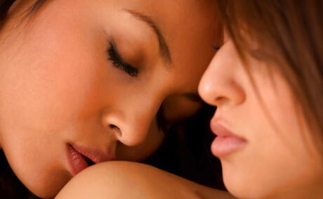 Sexy women Adrianna Luna and Sara Luv licking pink pussies during hot lesbian sex