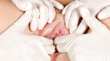 Sexy women Katy Caro, Orsolya J. and Misty Mild licking each others pussies and enjoying with toy
