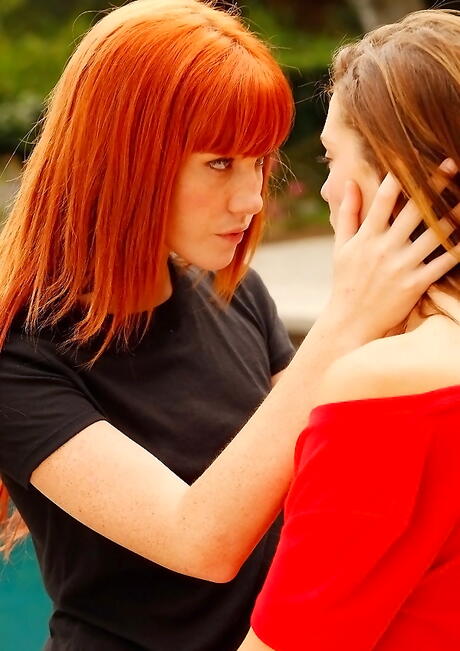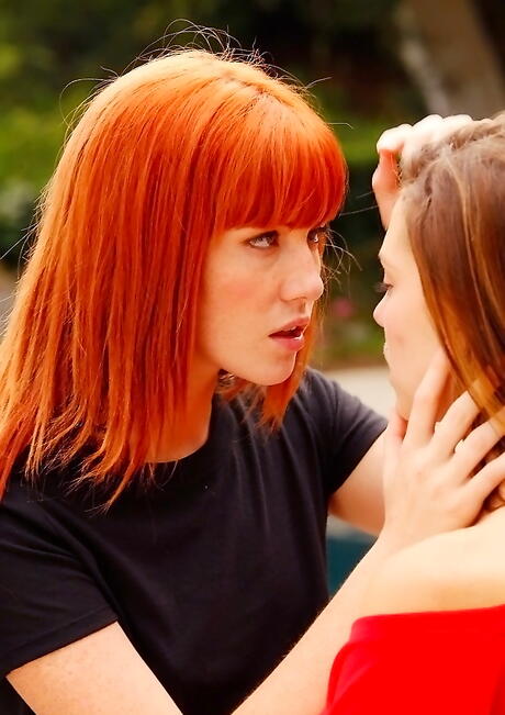 Sexy women Kiera Winters and Elle Alexandra have a passionate lesbian foreplay outdoor