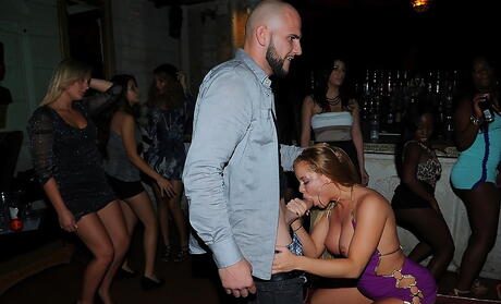 Sexy women Nikki Delano and Mandy Armani sucking on dick in the night club