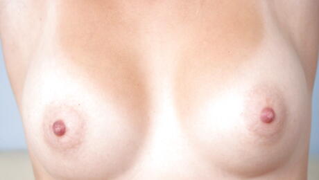 Sexy youthful Lina in sexy skirt exposes big knockers and toys her snatch