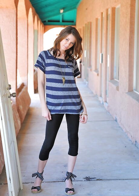 Shapely american dark-haired hottie Allie Rose in hot undies exposes big hooters and butt outdoor