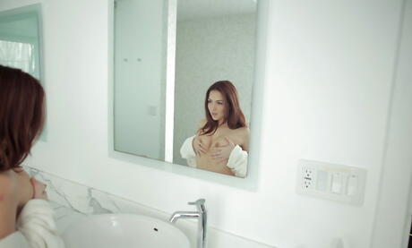 Shapely american redhead young Cassie Laine exhibits small tits and ass in shower