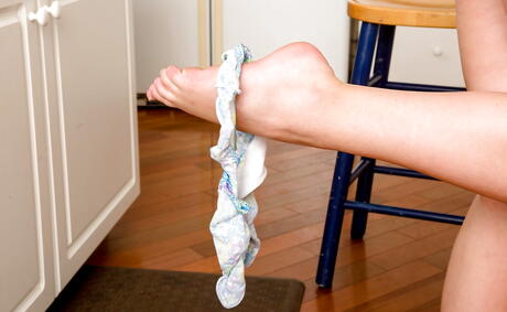Shapely american teen Jillian Janson show some foot fetish in kitchen