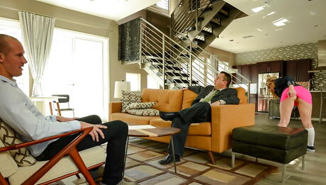 Shapely american young Aubrey Sinclair in sexy skirt drilled by huge cock