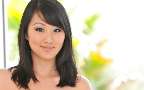 Shapely asian dark hair cutie Evelyn Lynn in sexy undies denudes small tits and spreads her legs