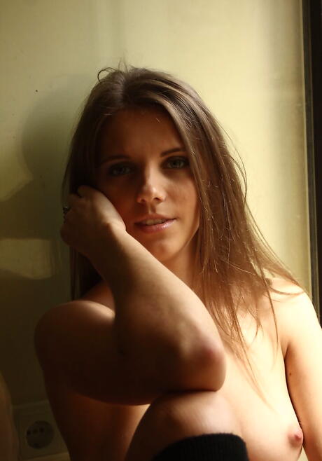 Shapely babe Kira in underwear shows small tits and spreads her legs