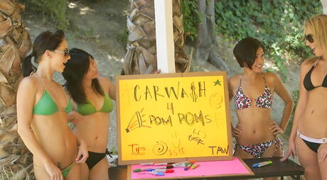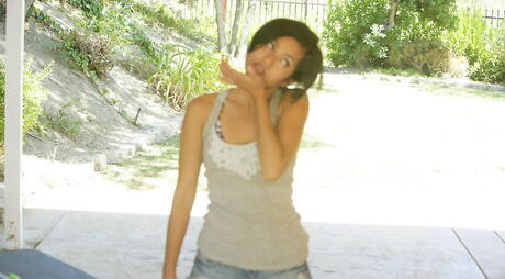 Shapely beauties Jaelyn Fox and Jessica Valentino exposing hot bodies outside
