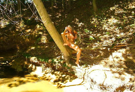Shapely blonde teen Tereza bares big knockers and sissy outdoor