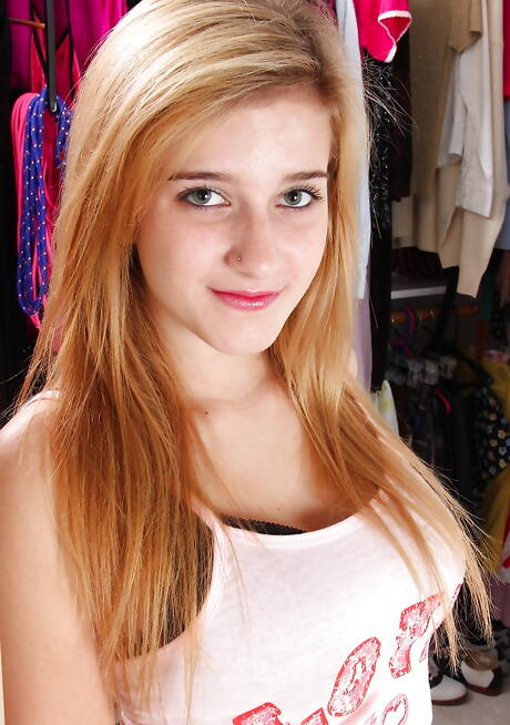 Shapely blonde young Karma Jones in hot underwear reveals big boobies and cute pussy
