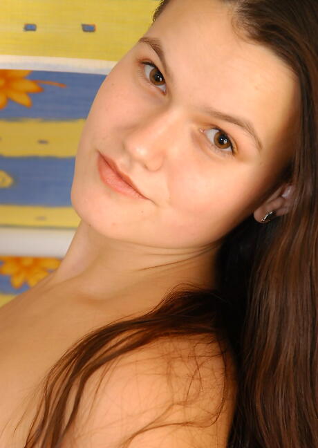 Shapely brunette young Denisa showing her butt and puting a toy in her cunt