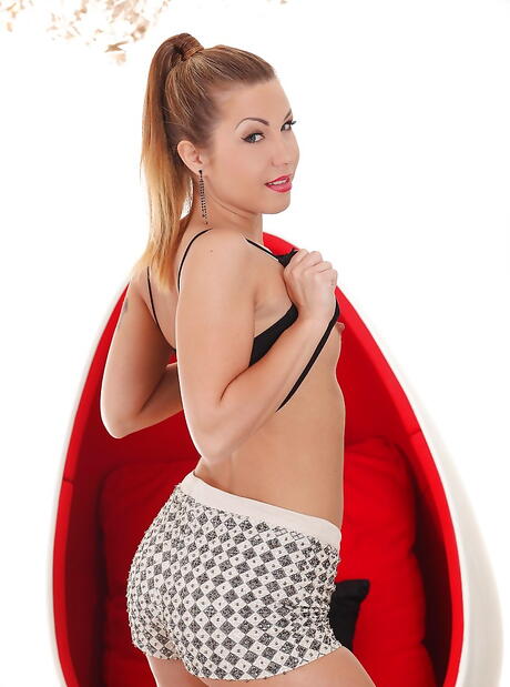Shapely cutie Cheryl S. in fancy shorts uncovers small tits and butt