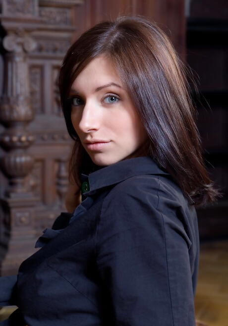 Shapely dark hair youthful Simone B in skirt showing big knockers and spreading her legs