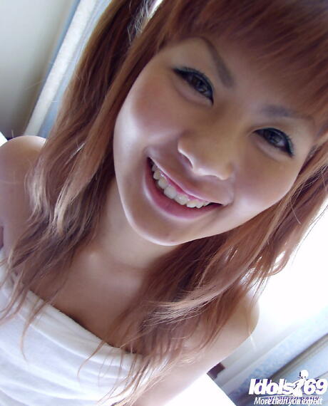 Shapely japanese redhead teen Aki uncovering small tits and spreading her legs in shower