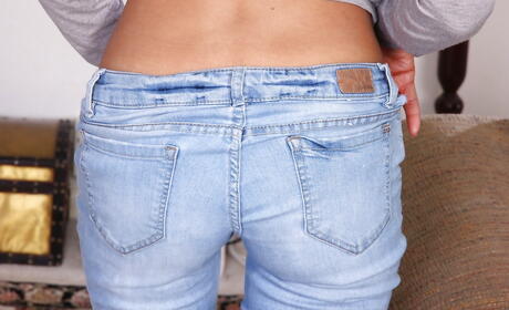 Shapely milf Aria Deras exhibiting small tits and bald pussy
