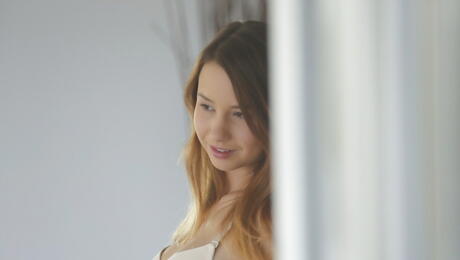 Shapely netherlander dark-haired young Taylor Sands unveiling tiny tits and spreading her legs