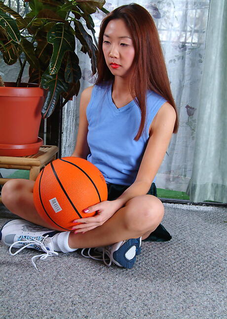 Shapely oriental brunette teen Heidi Ho in sexy shorts bares her ass and sissy