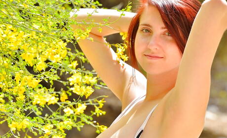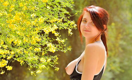 Shapely redhead teen Lexi exposing big boobs and sexy ass outdoor