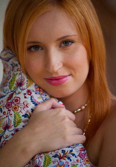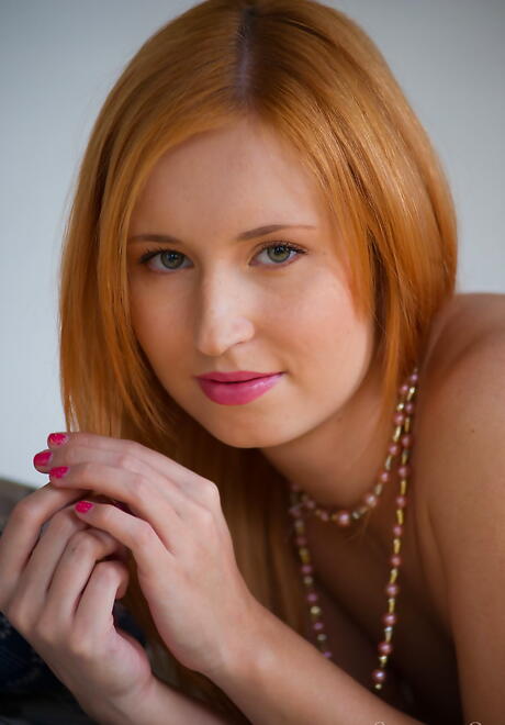 Shapely redheaded teen Nikky B baring small tits and shaved pussy