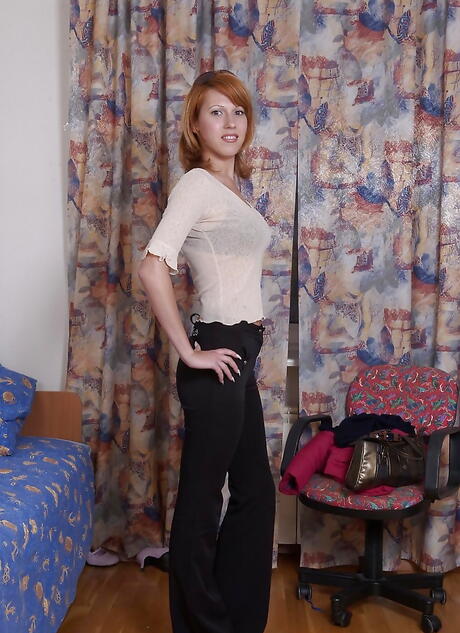 Shapely redheaded young Eugenia in hot lingerie reveals big knockers and spreads her legs