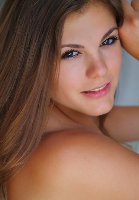 Shapely teen Lora N exposes big knockers and spreads her legs