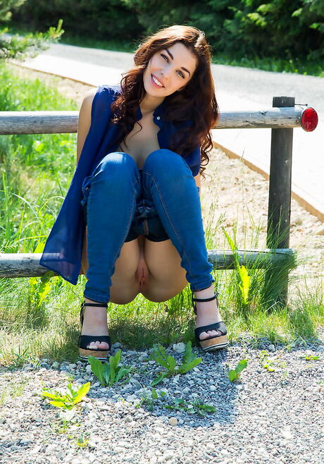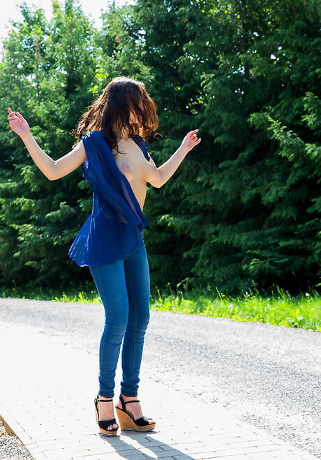 Shapely ukrainian brunette young Evita Lima showing big tits and sexy ass outside