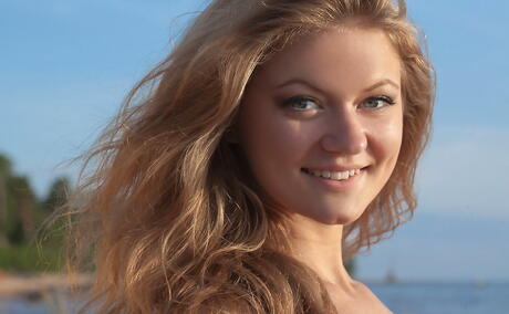 Shapely youthful Patritcy baring tiny tits and sexy ass on the beach